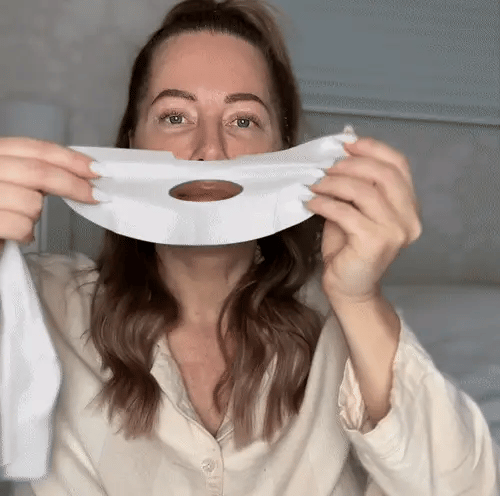 Lisäksi naamio sisältää kosteutta sitovia ainesosia, kuten alginaattia ja karrageeniuute, jotka auttavat ihoa säilyttämään elastisuutensa ja kosteutensa, mikä johtaa ajan myötä kiinteämpään ja sileämpään ihoon.